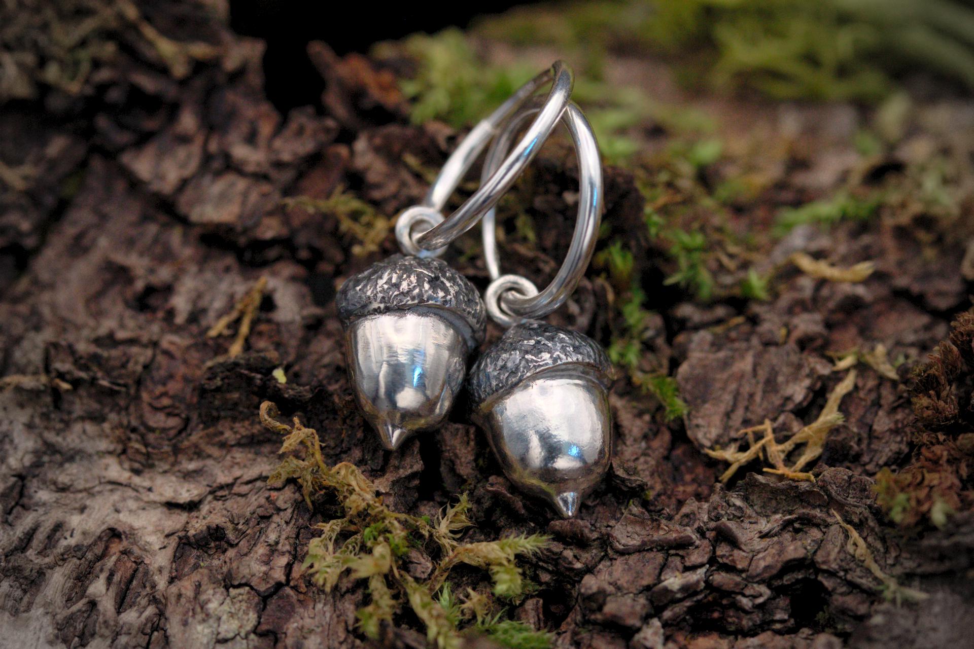 These beautiful acorns were created using precious metal clay, which turns into sterling silver once fired. It has a wonderful texture from the real acorn that is used to make it. A patina has been applied to the cap of the acorn to enhance the details.