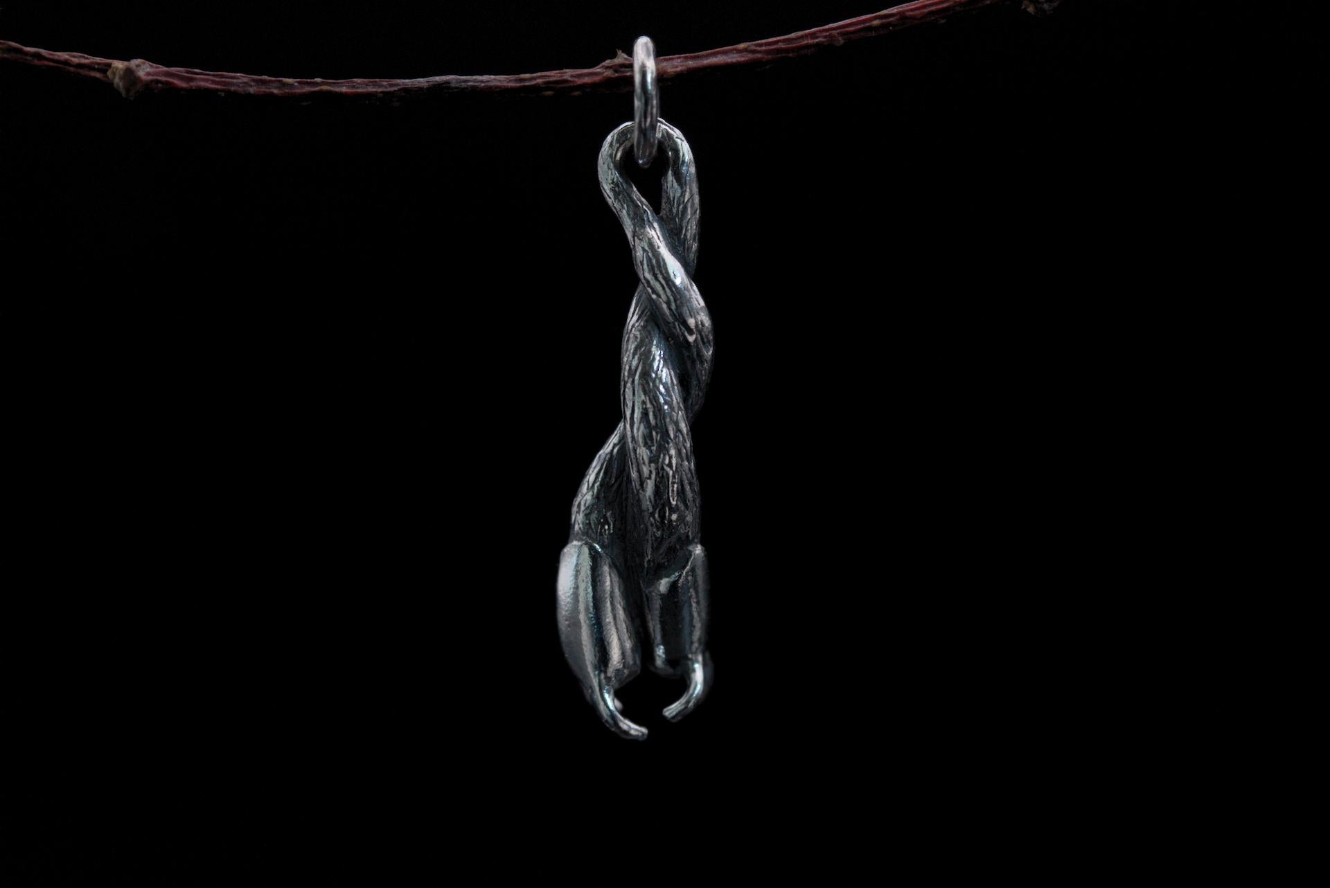 This pendant was crafted using precious metal clay, which turns to fine silver (.999) once fired in a kiln. It is a delicate piece with its little antenna, so please take care with it. It has a patina on the body of the slugs, which brings out the little details.