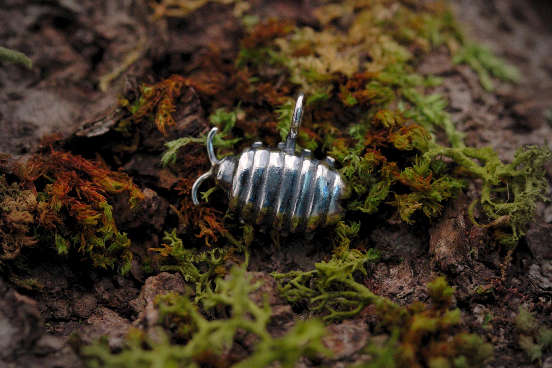 A solid metal hand-sculpted Isopod* pendant. Bet you never thought they looked this cute!