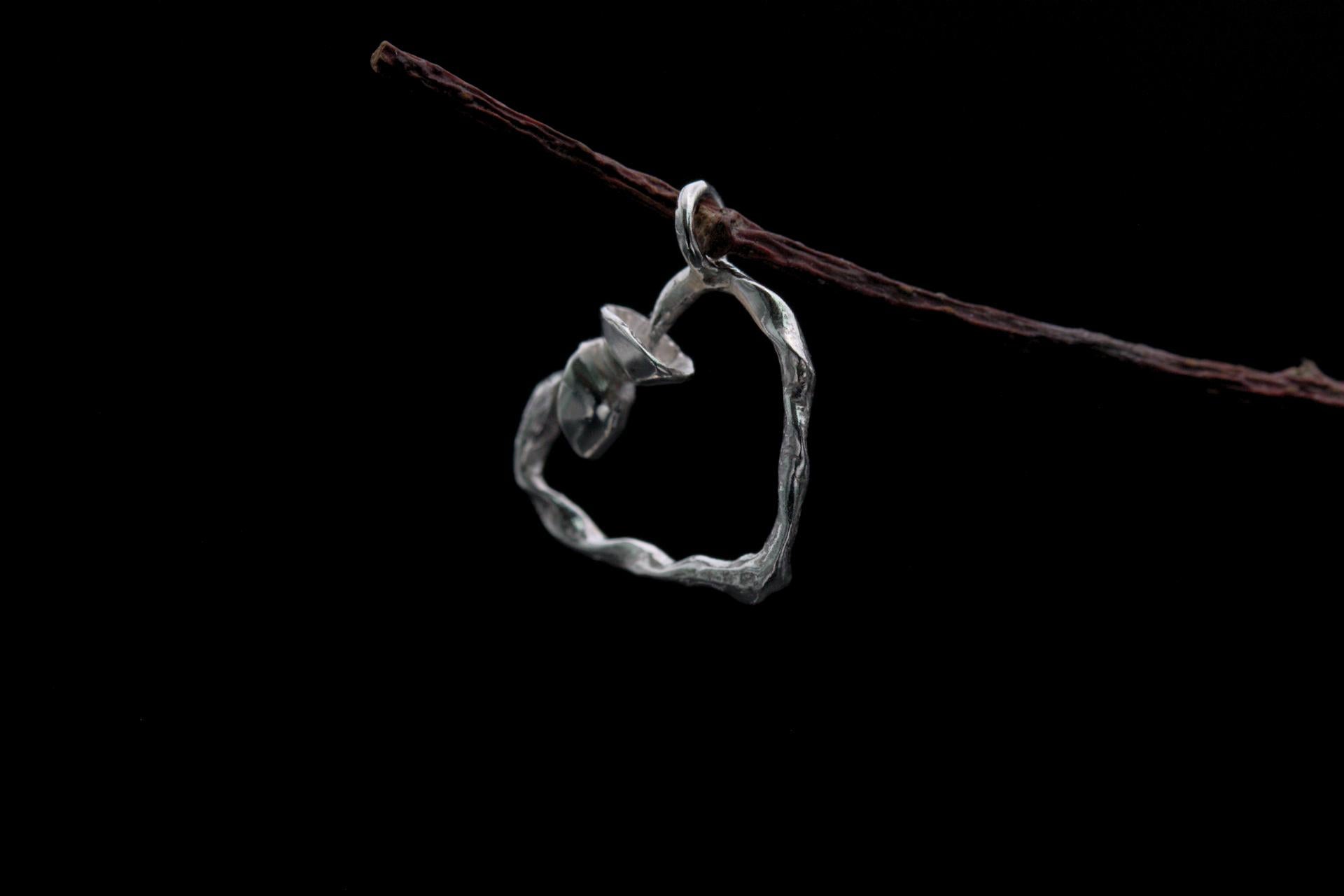 This pendant features a pair of tiny fungi with twisted stalks, shaped to form a heart. Is there mush-room in your heart for this?