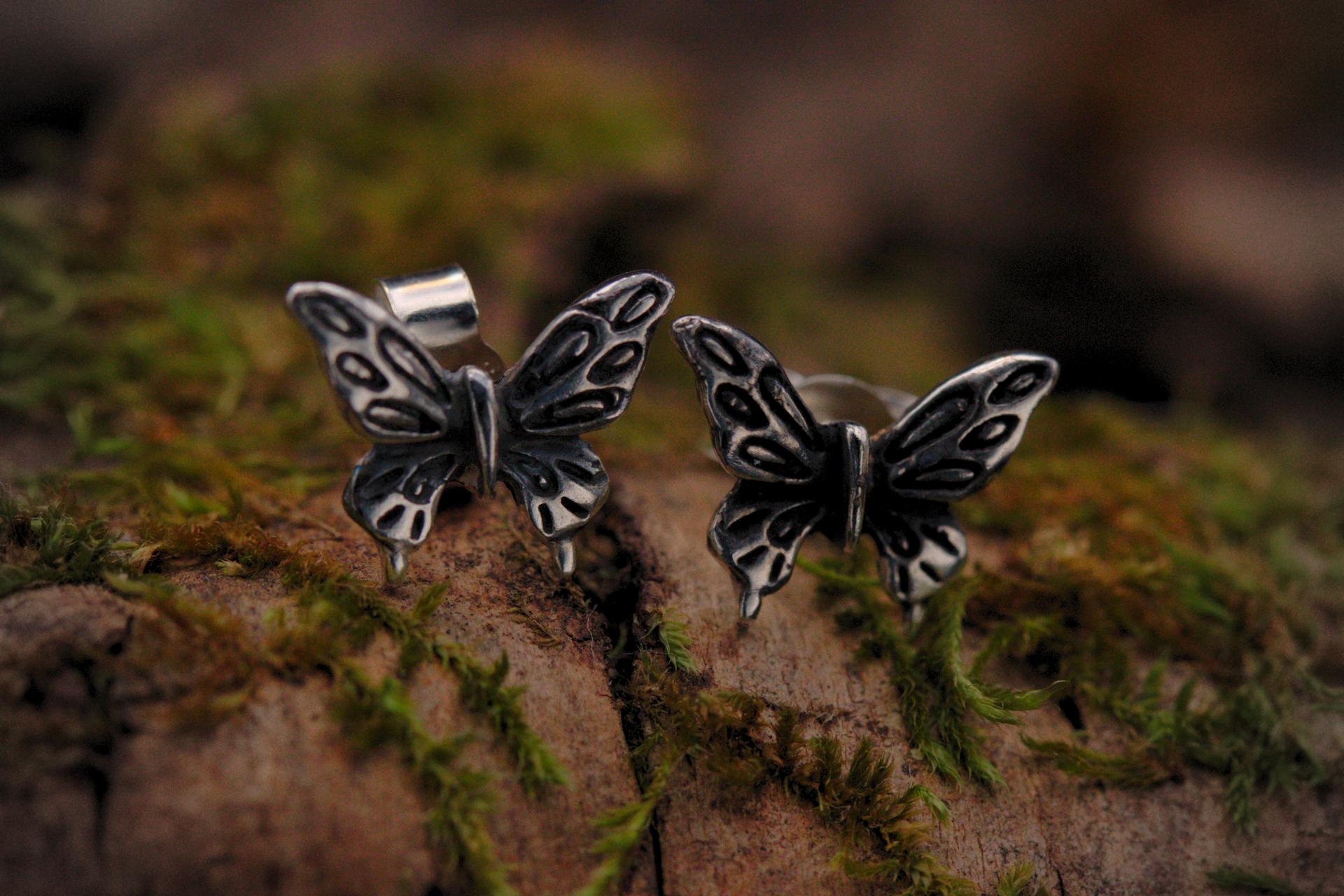 These earrings come with 9.5mm sterling silver posts and scrollbacks. The moths are 8.7mm in length and 11.1mm in width.