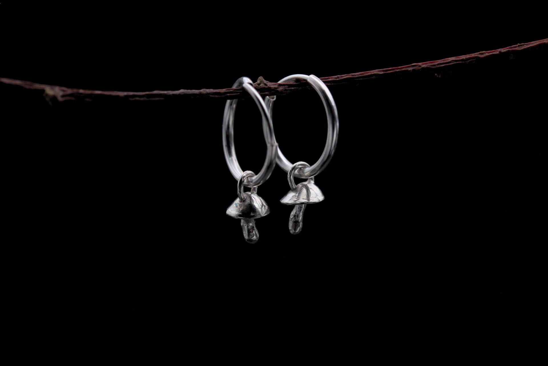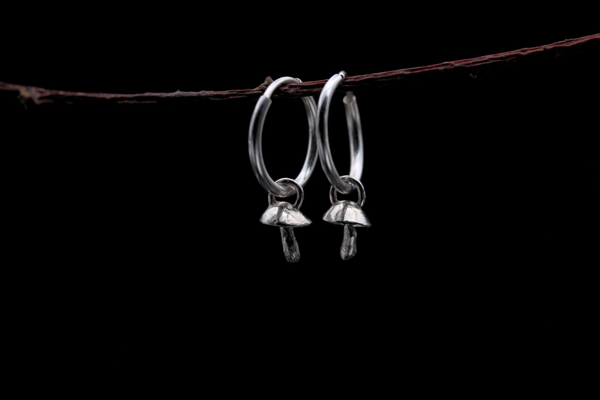 These tiny fungi come with 12mm sterling silver endless hoop earrings.