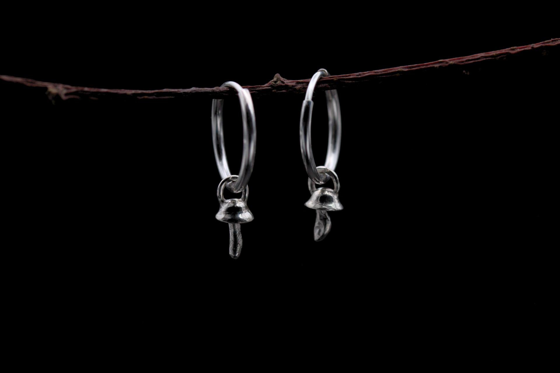 These tiny fungi come with 12mm sterling silver endless hoop earrings.