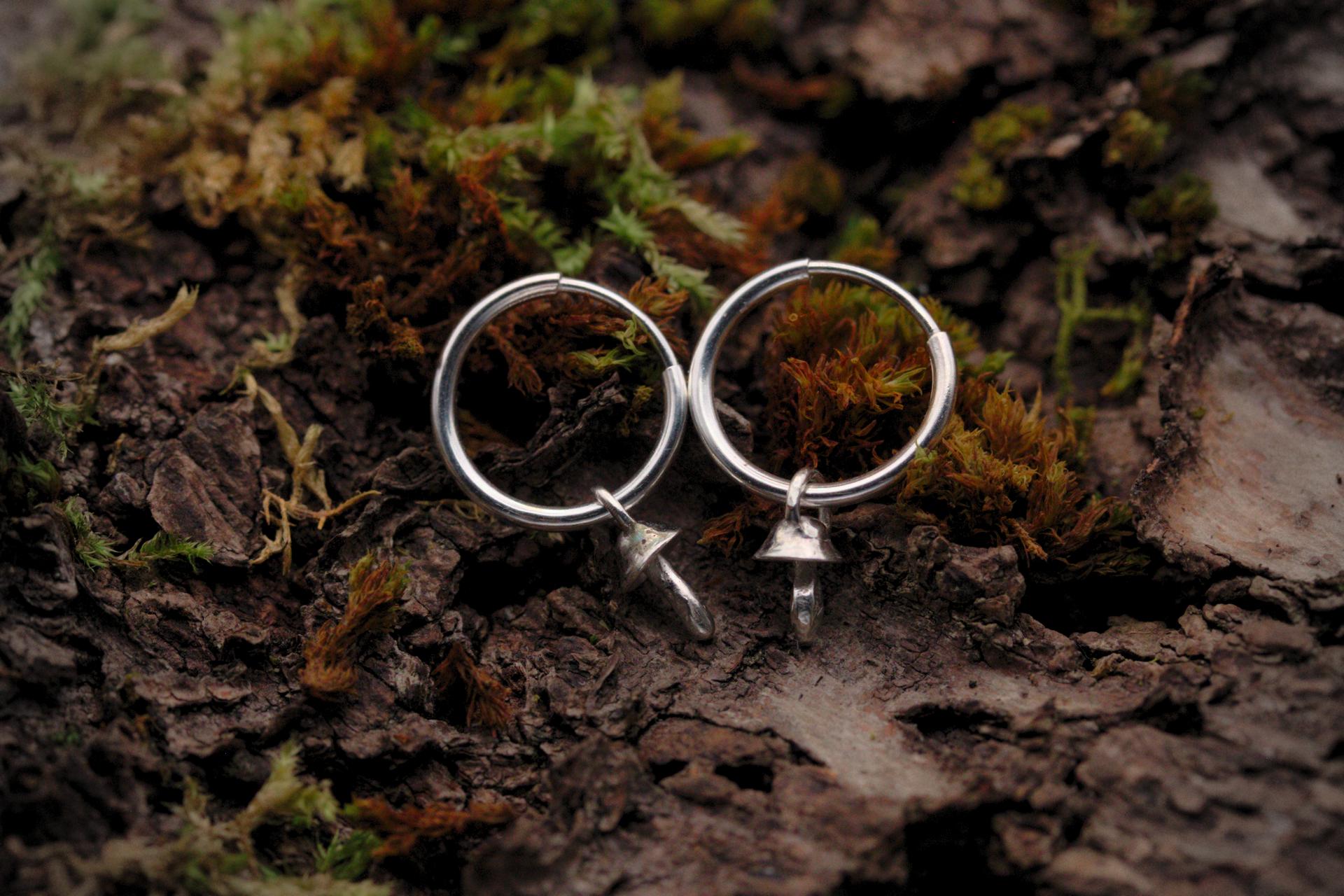 Tiny fungi charm earrings made using sterling silver - each fungi is unique, no two are ever the same. These fungi are paired for their similar shape and size.