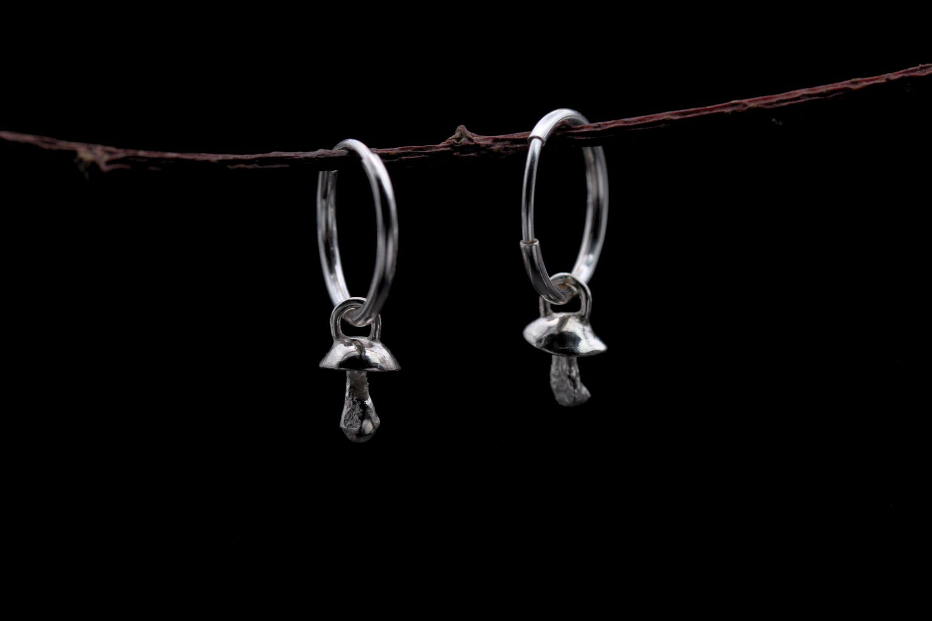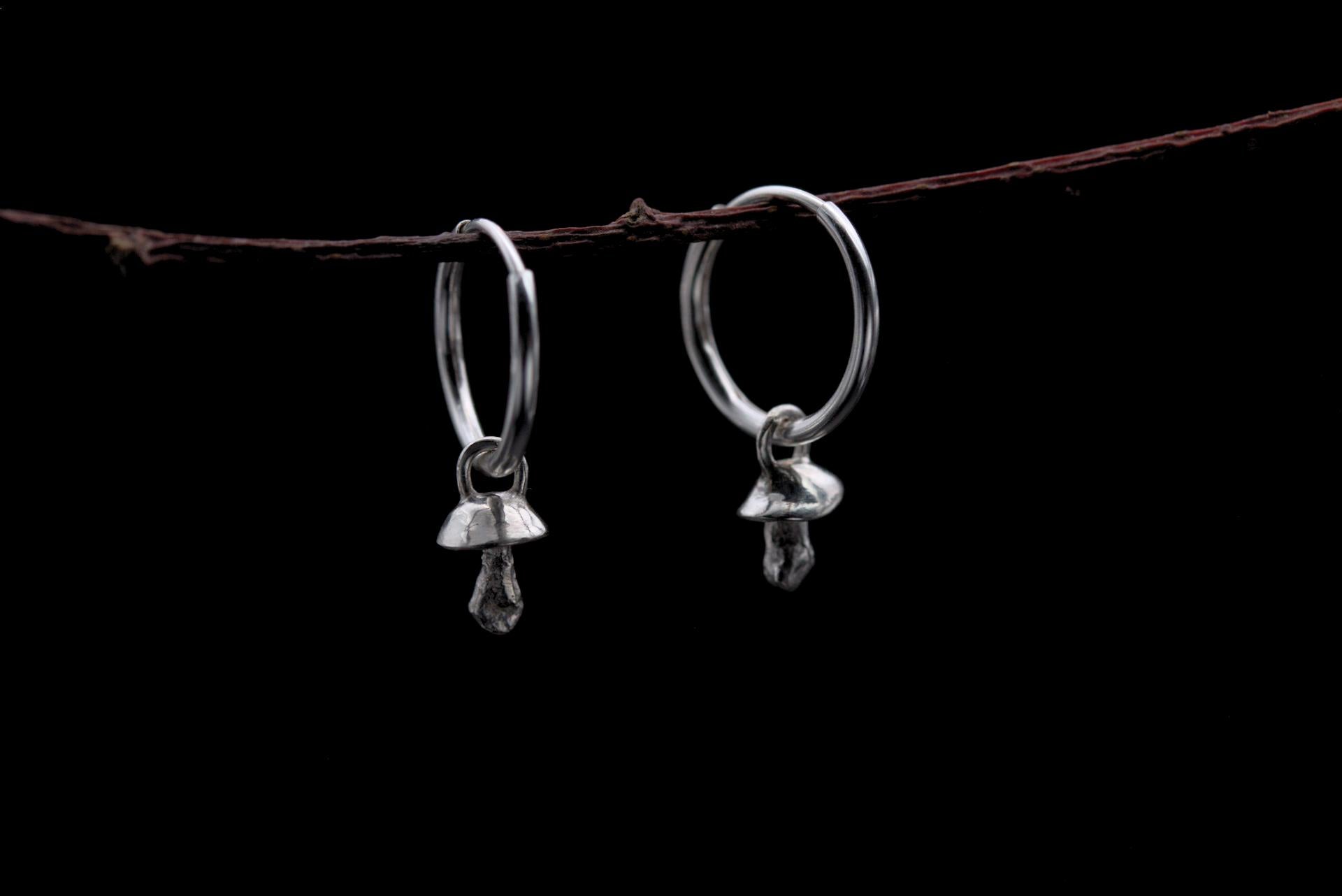 These tiny fungi come with 12mm sterling silver endless hoop earrings.