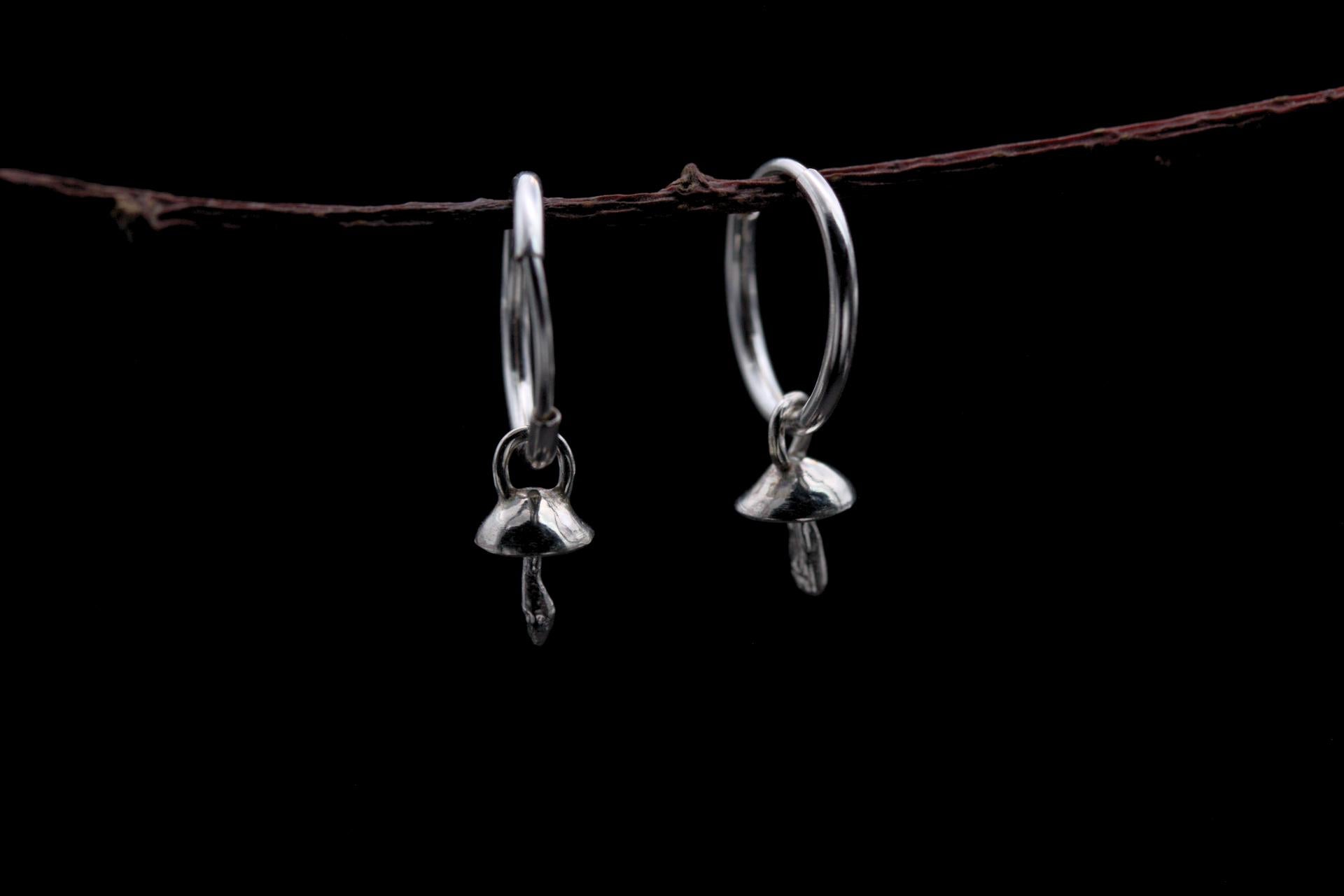 Tiny fungi charm earrings made using sterling silver - each fungi is unique, no two are ever the same. These fungi are paired for their similar shape and size.