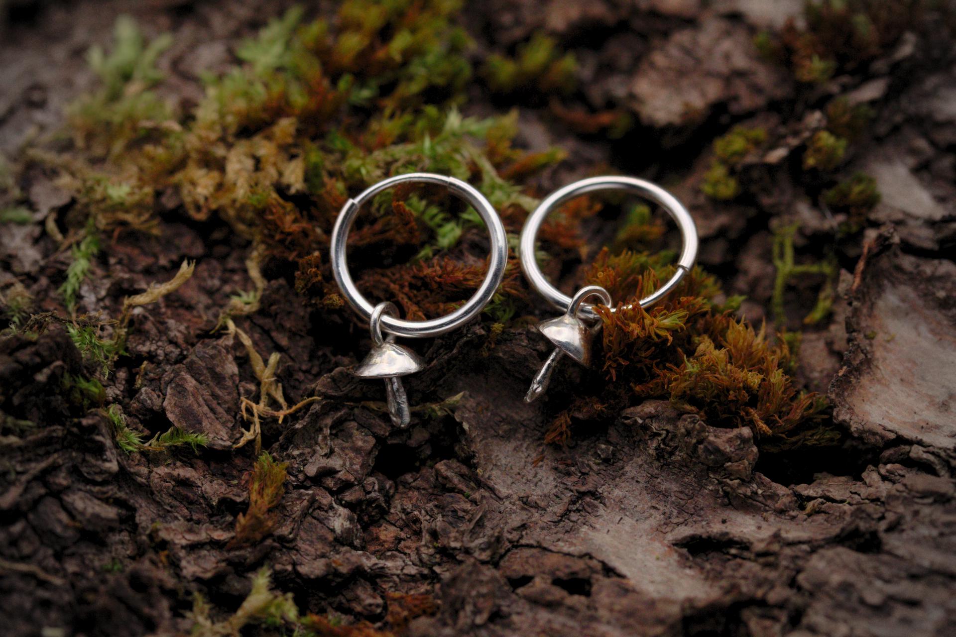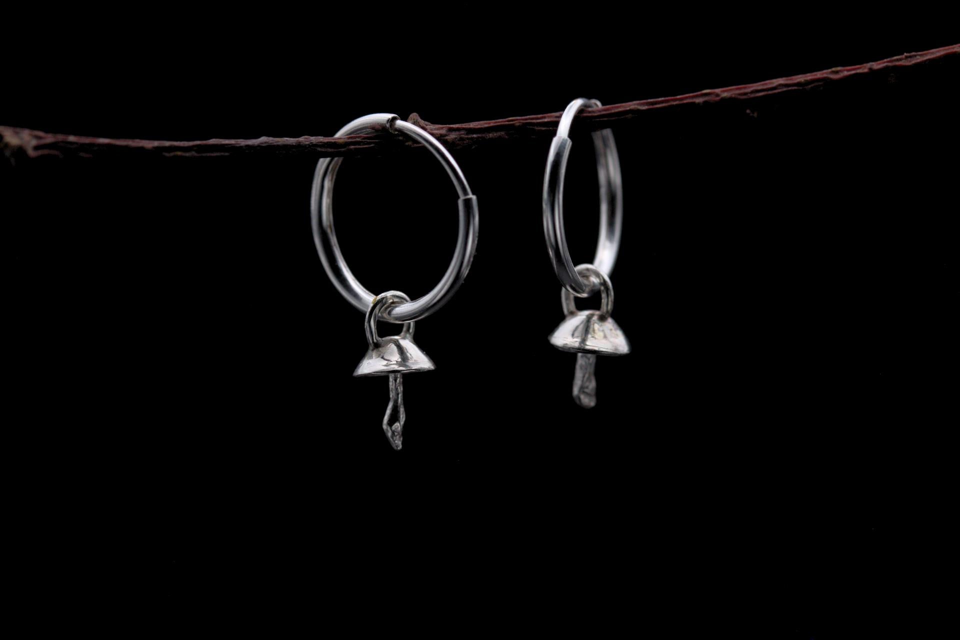 These tiny fungi come with 12mm sterling silver endless hoop earrings.
