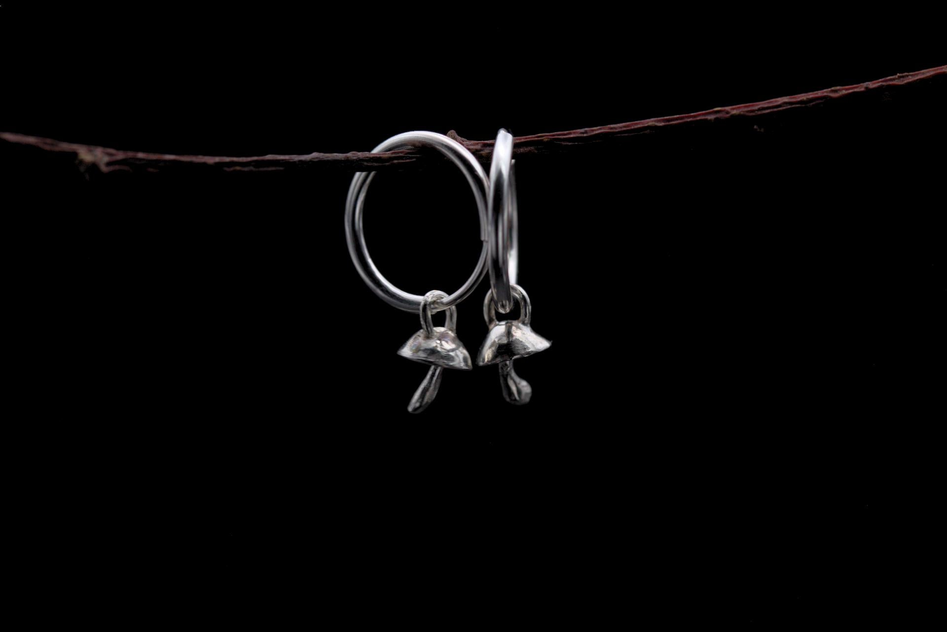 Tiny fungi charm earrings made using sterling silver - each fungi is unique, no two are ever the same. These fungi are paired for their similar shape and size.