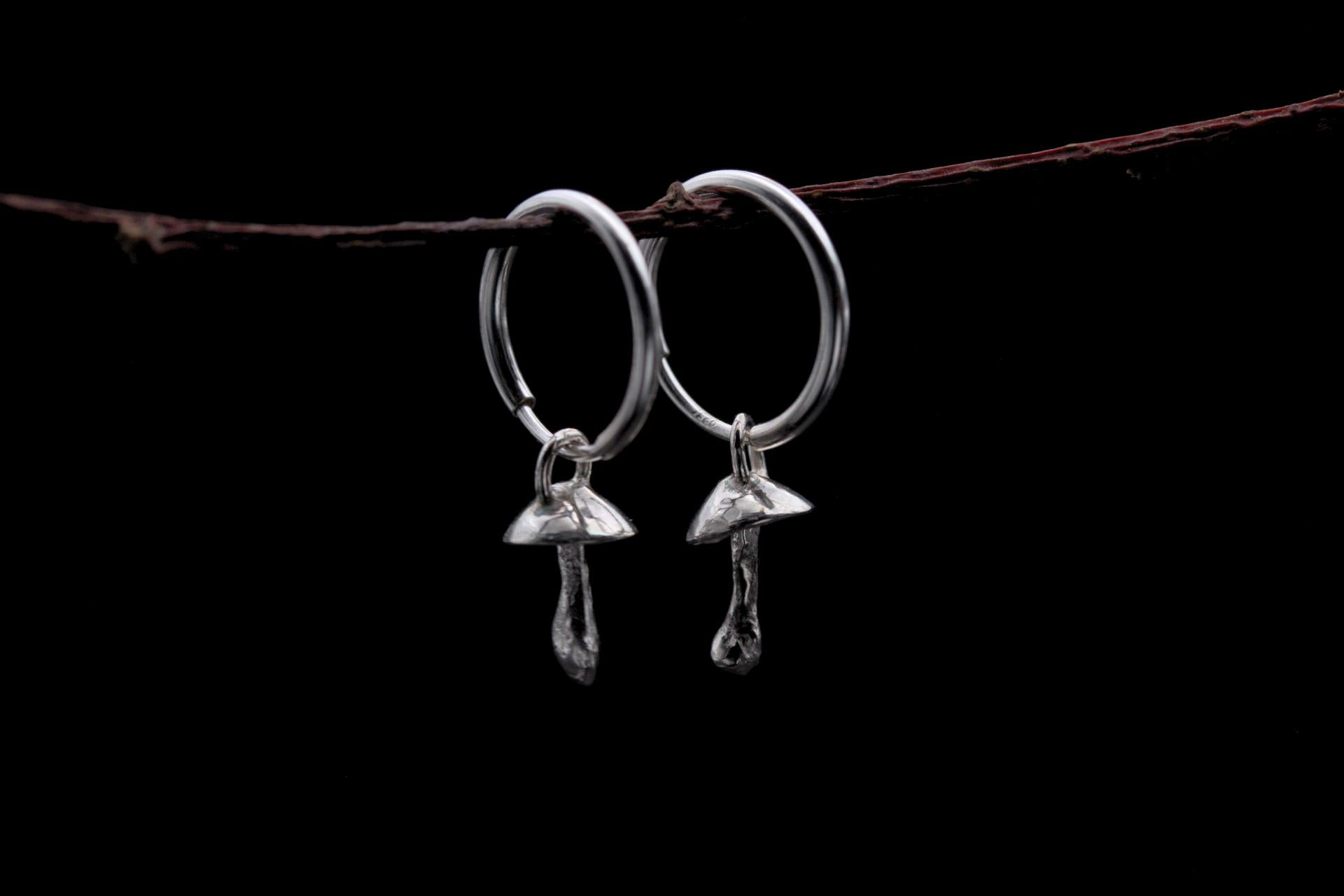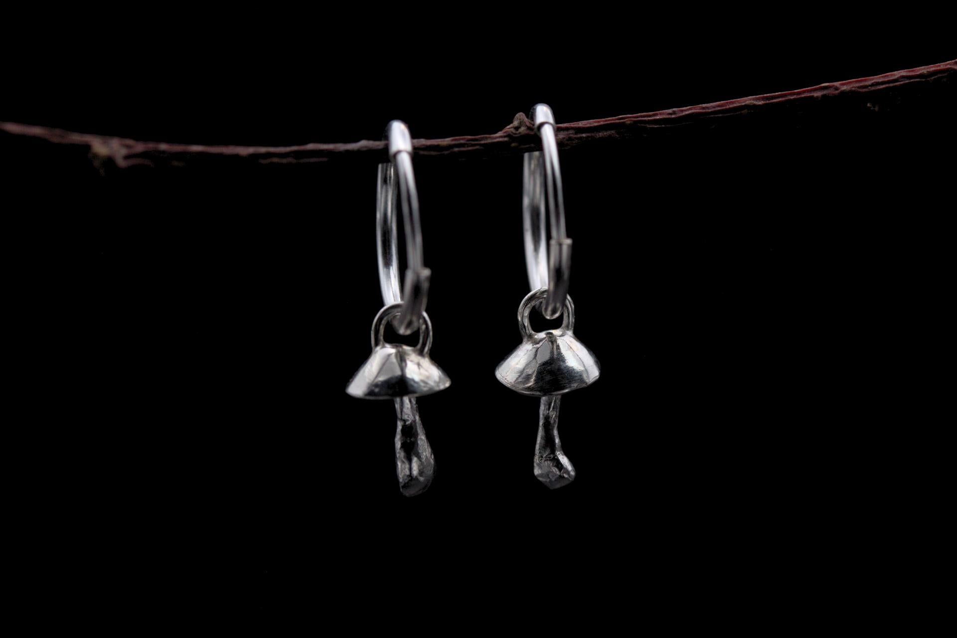 Tiny fungi charm earrings made using sterling silver - each fungi is unique, no two are ever the same. These fungi are paired for their similar shape and size.
